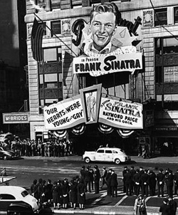 They were called bobby-soxers, his young fans, named after the rolled-down hosiery that peeped above their saddle shoes. Their fanatical behavior is familiar to us now, ensconced as we are within an intense celebrity culture. But in October 1944, outsiders did not understand why girls were in line outside of the Paramount Theatre at 3:00 am, hours and hours before the box office opened, in defiance of New York City's juvenile curfew, to hear a common-looking balladeer sing a commonplace love song like "All or Nothing at All." Theater ushers were not trained to handle the girls who swooned inside or outside the theater—some from anticipation and excitement, and some from among the cohort of fans who were mentally prepared to sit through all six of the day's scheduled performances, but who had neglected to pack their lunches. The city police force couldn't predict that a crowd of 30,000 outside of the theater would overwhelm its hundreds of police officers, when, after the day's first show, all but 250 of the 3,600 ticketholders refused to leave their seats—as was their privilege, according to theater's custom—causing those waiting in line to riot in frustration. Who could have predicted that a throng of girls would smash windows, trample passersby, and even, according to one report, overturn a car?